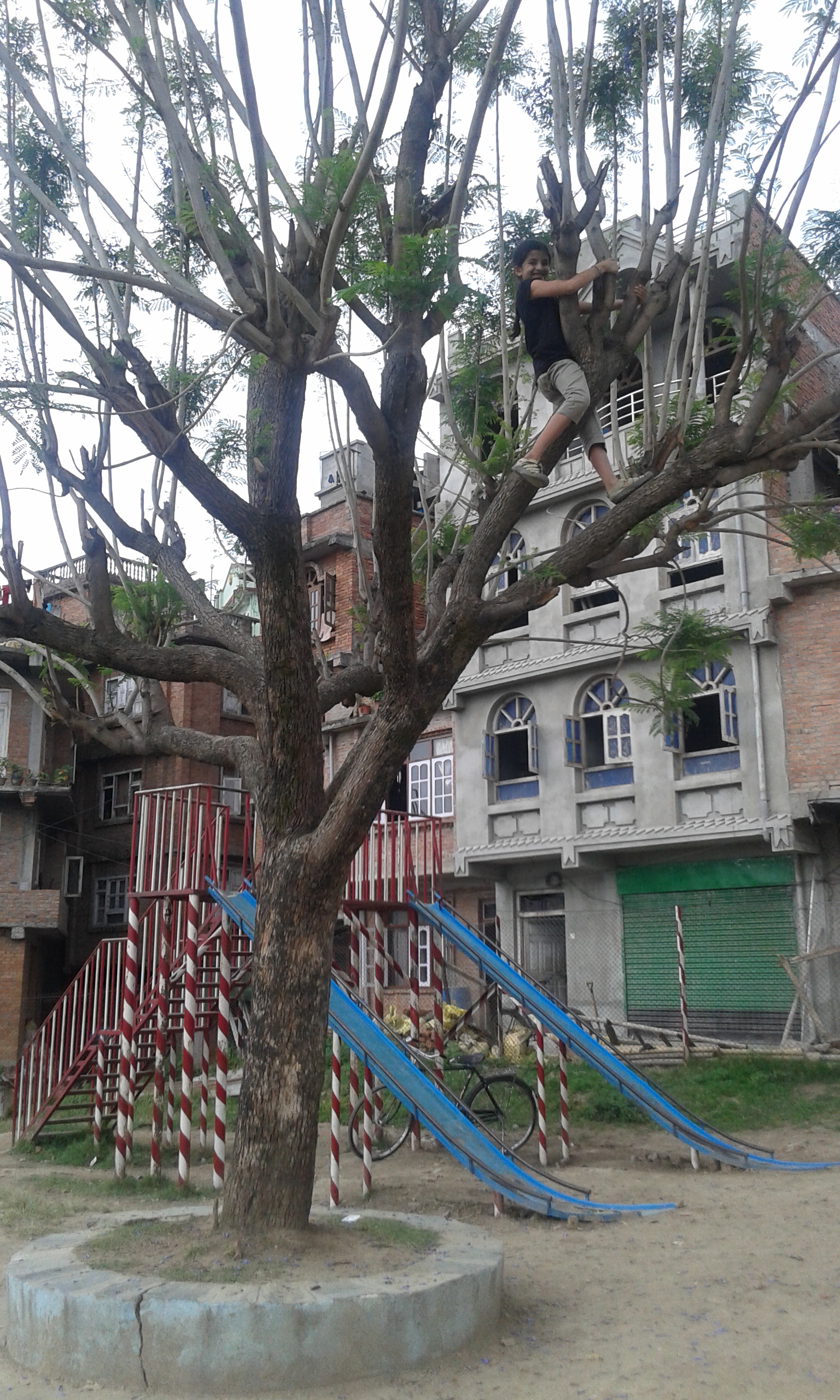 Sangeeta’s colleague, Prataap, showed us a few places that afternoon before we picked the kids up from school. Boy were we zonked by the end of this appointment – walking around KTM in the hot sun can get draining… We saw a nice and very affordable ($600 USD) apartment that was a 1 km walk from school. It was on the 3rd floor of a small building and occupied two levels. It was old yet reasonably maintained. Small rooms and kitchen, but a very nice bedroom and terrace. For the price, it was a good option. However, only older couples live in the compound of about 5-7 families. Maybe our kids would make too much noise, in their opinions?!? Also the size of the toilets reminded me of those you see in the pediatrician’s office! Kind of entertaining 🙂