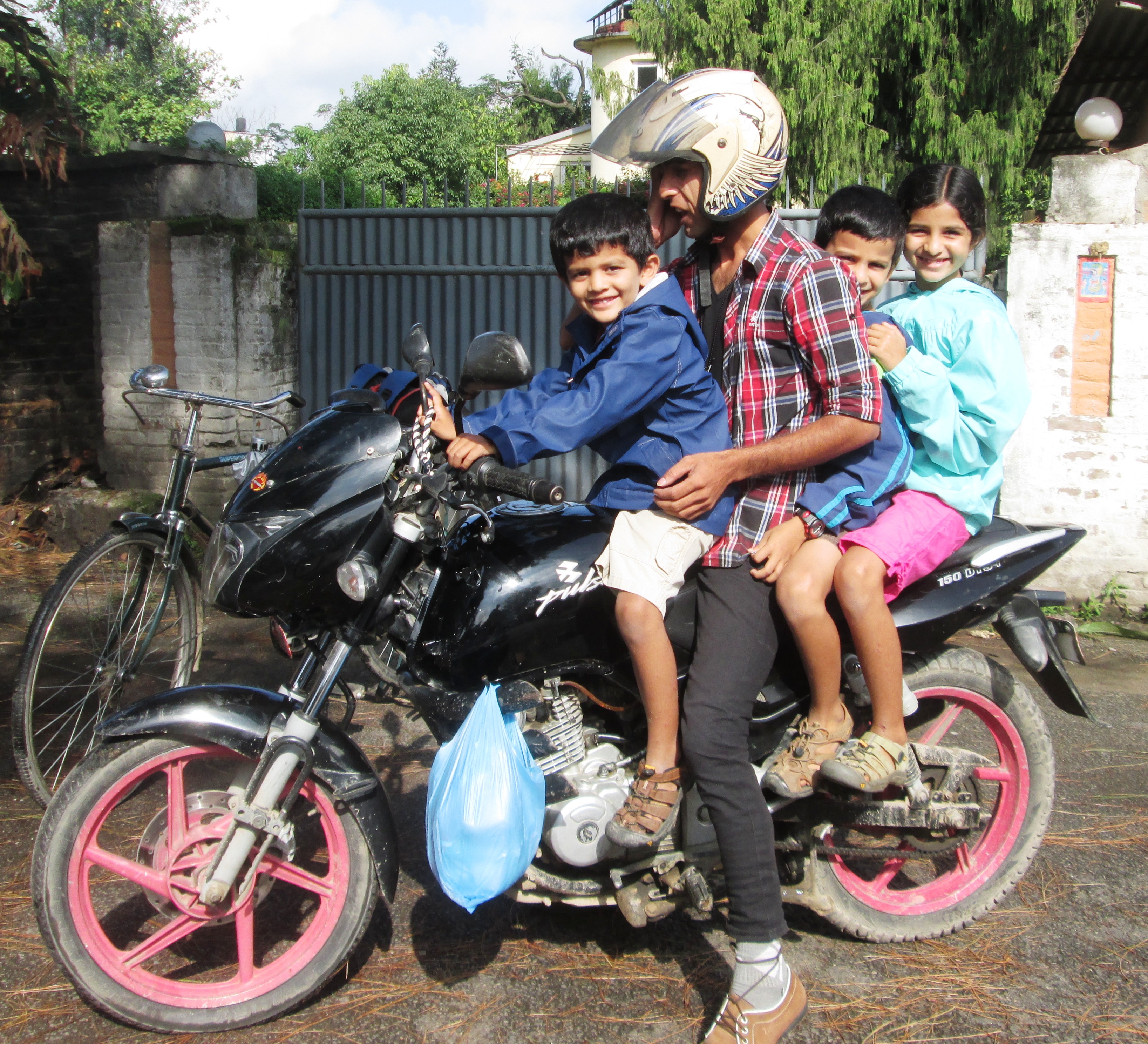 Unfortunately, Tika Dai fell sick Thursday night, but after resting most of Friday, he said he’d be up for the outing. I barely slept Friday night just imagining my 3 little munchkins, riding on a MOTORCYCLE, with a man I don’t know, going to a place I’ve never been, to a family’s house we’ve never met!!! But my gut told me to just relax and TRUST… I did my best…